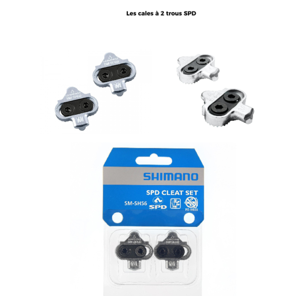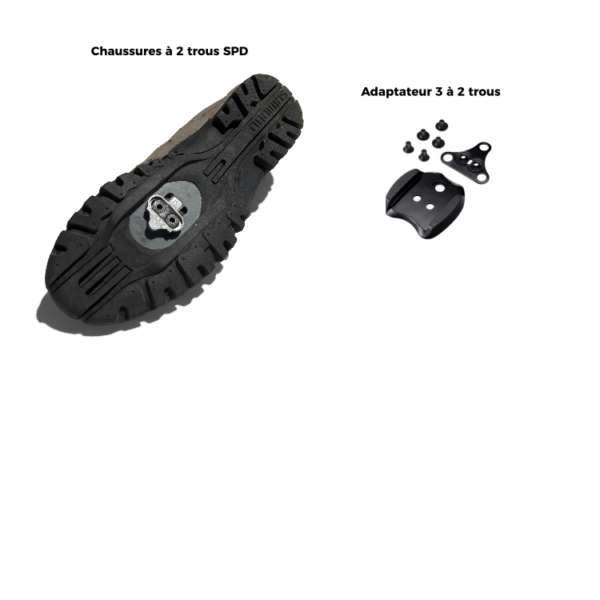 Les cales SPD nécessite les chaussures de cyclisme à 2 trous. Par contre, il existe des adaptateurs pour chaussures de route à 3 trous pour fixer la cale.