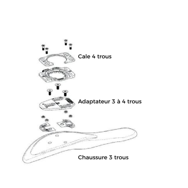 Les cales Speedplay nécessite les chaussures de cyclisme à 3 trous, avec un adaptateur 4 trous pour fixer la cale.